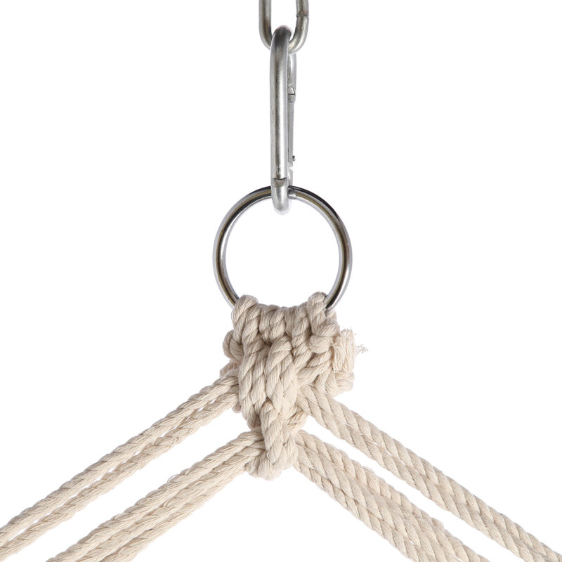 Der Stoff des Hängesessels NC3101 fühlt sich gut an. Der Sessel ist aus einem atmungsaktiven TC-Material hergestellt, das gleichzeitig sehr haltbar, witterungsbeständig und abriebfest ist. In Kombination mit den dick gewebten, festen Seilen, einem massiven Holzrahmen und einem Metallgriff beträgt die maximale Belastbarkeit des Hängesessels 120 kg. Die Gesamtheit all dieser Faktoren ist nicht nur ein Zeichen der Widerstandsfähigkeit und Sicherheit, sondern vor allem der Bequemlichkeit und des Benutzungskomforts.
