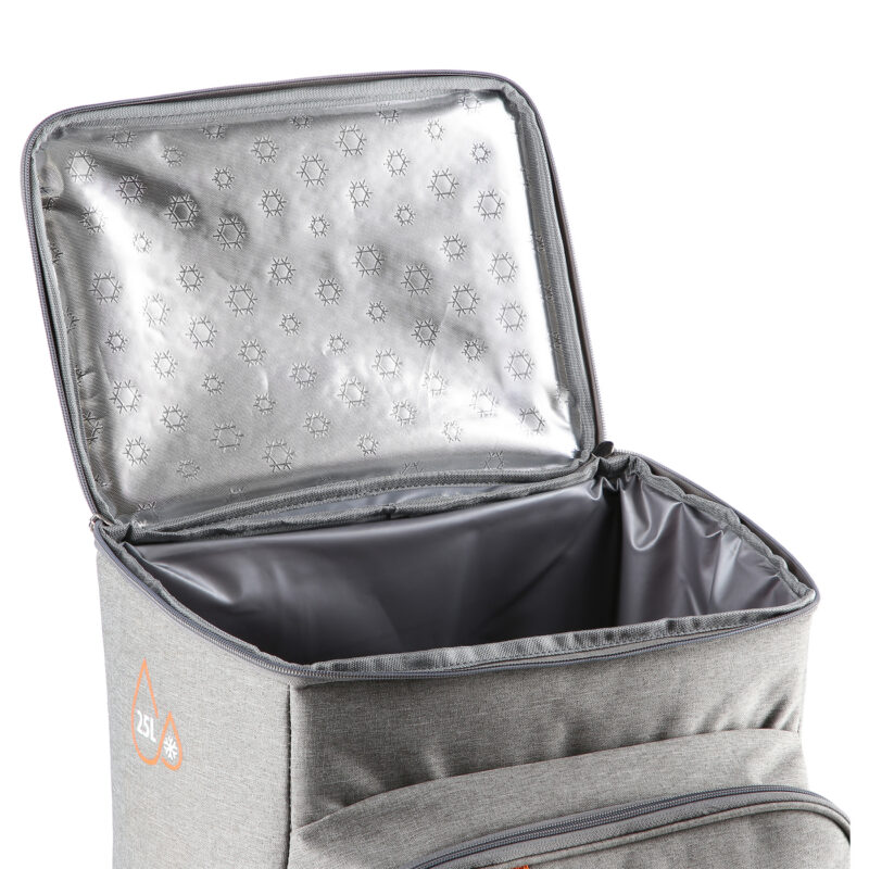 Gefertigt aus strapazierfähigem 300D Oxford Material und ausgekleidet mit isolierendem PEVA, bietet das Hauptfach ausgezeichneten thermischen Schutz. Die Tasche bietet auch zusätzlichen Raum dank zwei seitlichen Netztaschen und zwei vorderen Reißverschlusstaschen, ideal für die Aufbewahrung von Gegenständen, die keine thermische Isolierung benötigen. Mit einem Volumen von 25 Litern und einem geringen Gewicht ist sie nicht nur sehr geräumig, sondern auch leicht zu transportieren, was sie zu Ihrem zuverlässigen Partner bei jedem Outdoor-Abenteuer macht. Zusätzlich verfügt die NC3140 über verstellbare Schulterriemen, die es ermöglichen, sie wie einen Rucksack zu tragen. Diese Lösung ist ideal für Personen, die ihre Hände frei haben möchten, sei es auf Wanderungen oder Fahrradtouren.