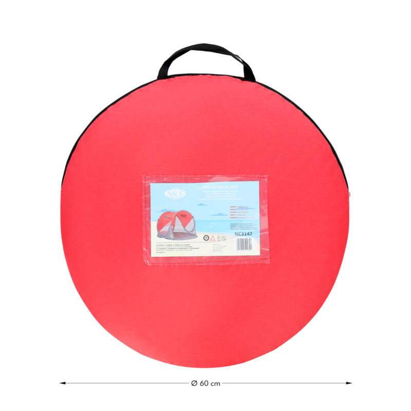 NC3142 STRANDZELT SELBSTAUFBAUEND ROT-GRAU 150x120x100 BODEN NILS CAMP
