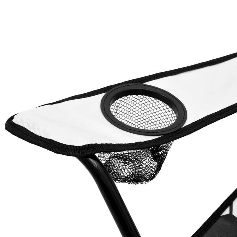 Der Stuhl ist aus langlebigen Materialien gefertigt – es wurde ein Stahlrohr mit einem Durchmesser von 16 mm und einer Wandstärke von 0,7 mm verwendet, das schwarz pulverbeschichtet ist, was die Beständigkeit gegen Korrosion und mechanische Beschädigungen erhöht. Die Sitzfläche und die Rückenlehne sind aus abriebfestem 600D-Polyester mit PE-Beschichtung gefertigt und mit einem schwarzen Verstärkungsband versehen. Das Ganze sorgt für ausreichende Stabilität und Langlebigkeit, auch bei intensiver Nutzung.