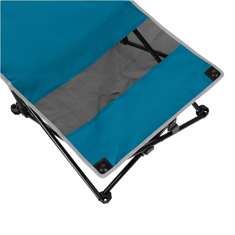 Die Sitzfläche und die Rückenlehne bestehen aus strapazierfähigem 600D-Polyester, das zusätzlich mit einer PVC-Schicht überzogen ist. Dieses Material ist nicht nur abriebfest und feuchtigkeitsbeständig, sondern auch sehr leicht zu reinigen. Ein schwarzes Verstärkungsband verbessert die Haltbarkeit der Kanten und sorgt für einen eleganten Abschluss.