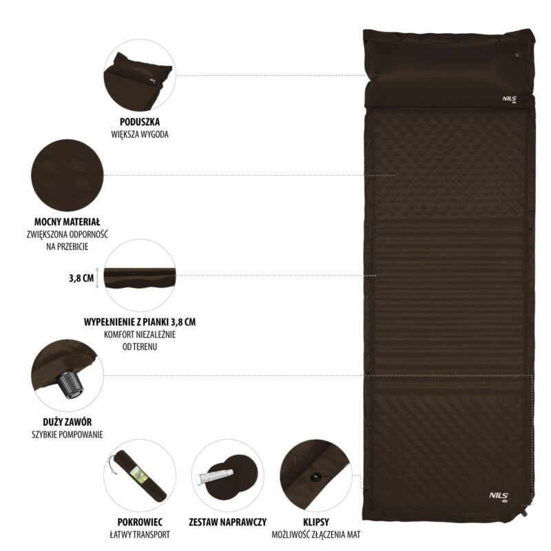Die selbstaufblasende Matte mit Kissen NC4001 ist eine großartige Lösung für jeden Liebhaber von Camping, Zelten oder Sonnenbaden!
