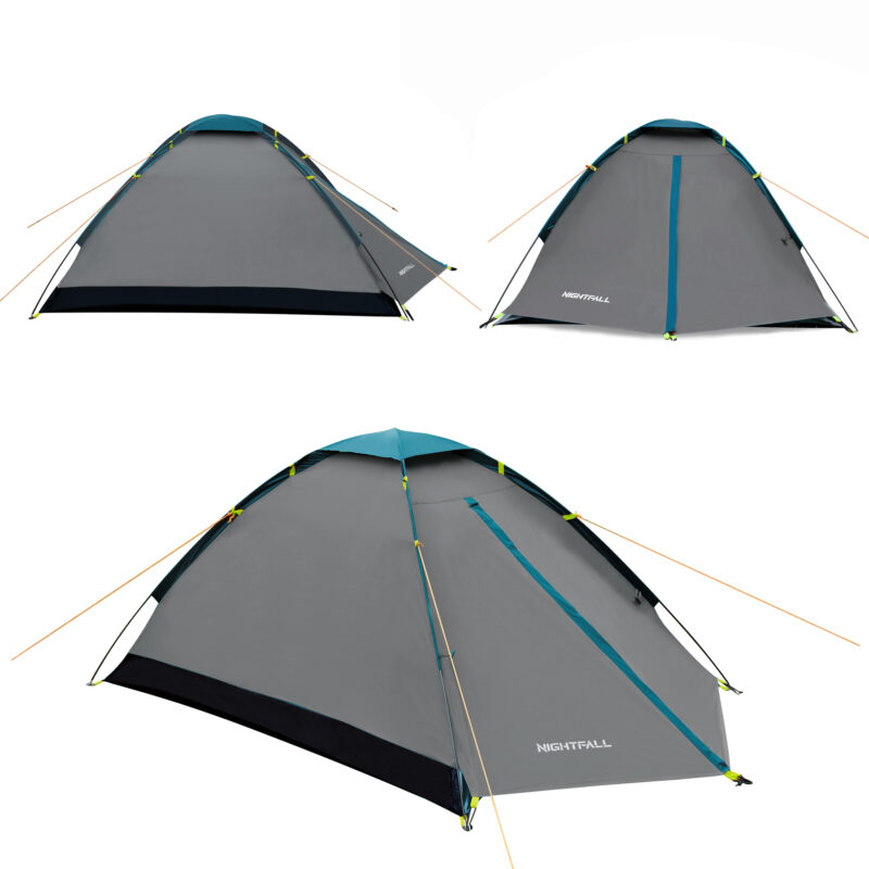 Nightfall bietet Platz für zwei Personen und sorgt für komfortablen Schlaf nach einem abenteuerlichen Tag. Ein besonderes Merkmal dieses Modells ist das doppelte Material an der Vorderseite des Zeltes, das zusätzlichen Schutz vor Wind und Regen bietet. Außerdem schützen ein Moskitonetz und Ventilationsschlitze vor Insekten und sorgen gleichzeitig für hervorragende Luftzirkulation. Im Inneren befindet sich eine Tasche für die praktische Aufbewahrung kleiner Gegenstände sowie ein Haken zum Aufhängen einer Lampe.