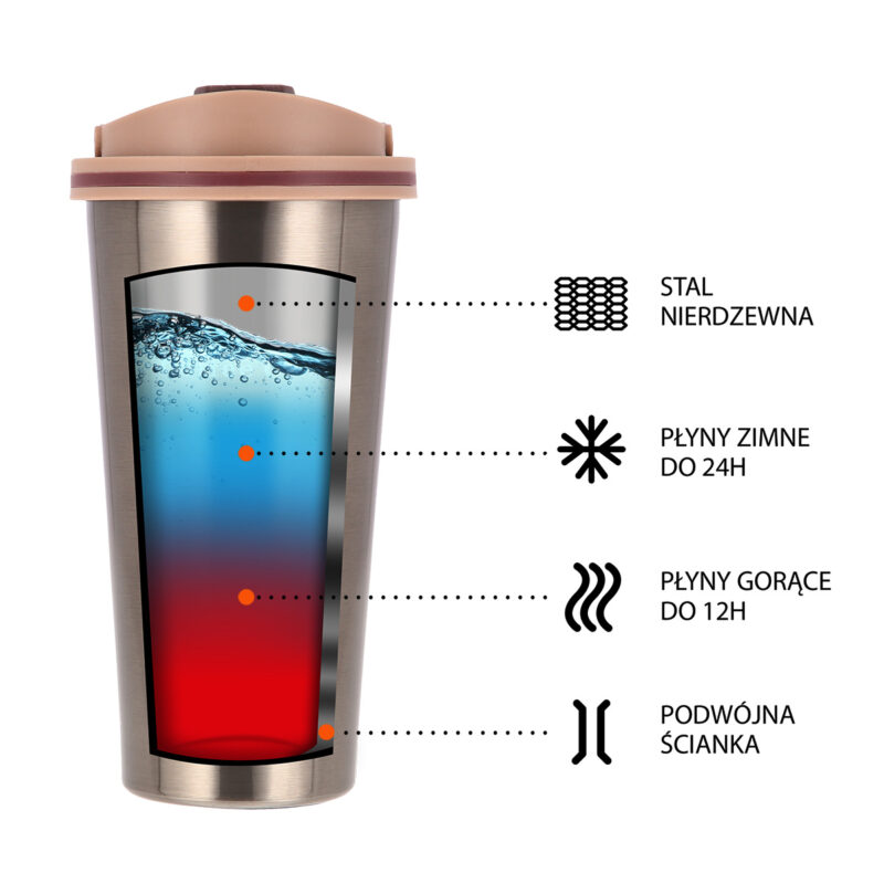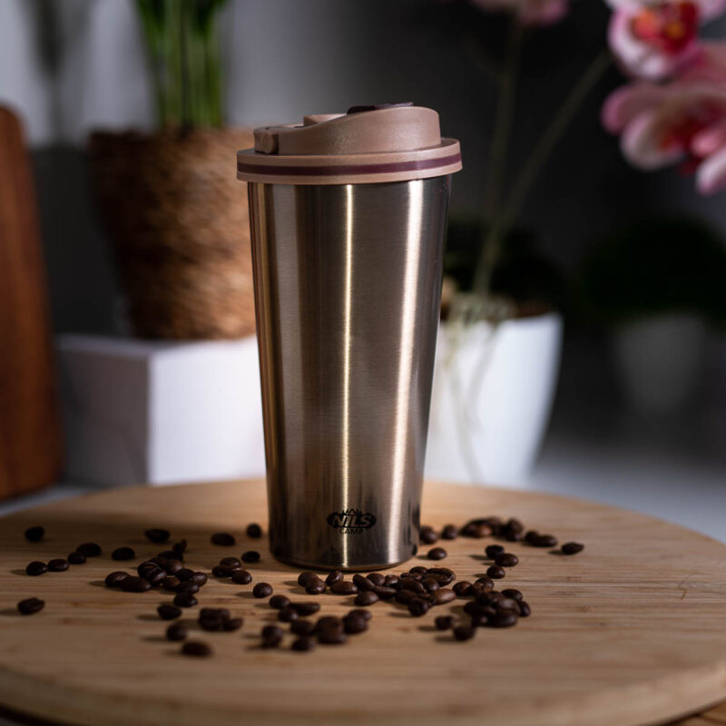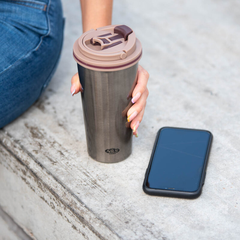 Der Thermobecher NCB18 der Marke NILS CAMP zeichnet sich sowohl durch eine einfache Konstruktion als auch durch sein originelles Design aus! NCB18 ist doppelwandig und aus rostfreiem Stahl hergestellt, daher hält er die eingefüllten Getränke warm bis zu 12 Stunden und kalt bis zu 24 Stunden. Der Thermobecher NCB18 hat ein sehr bequemes Öffnungssystem. Es reicht nur den Griff nach oben zu ziehen. Der Thermobecher ist auch mit einem zusätzlichen Griff ausgestattet, der sehr nützlich beim Transport sein kann. Ein großer Vorteil ist auch die rutschfeste Unterseite des Bechers aus Gummi, was vor dem Verschütten des heißen Kaffes oder Tees schützt, wenn der Thermobecher geöffnet ist!