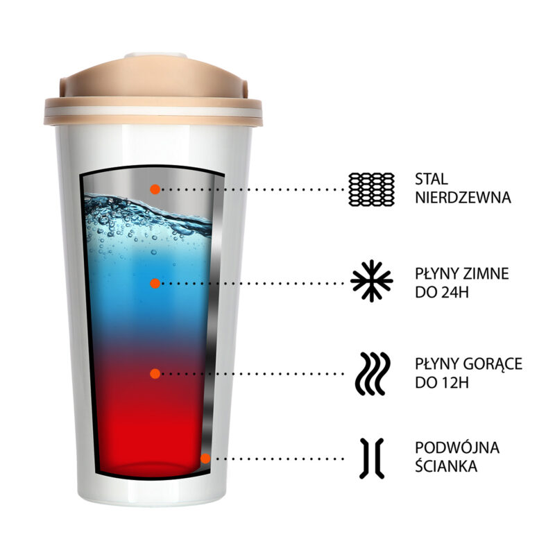 Der Thermobecher NCB18 der Marke NILS CAMP zeichnet sich sowohl durch eine einfache Konstruktion als auch durch sein originelles Design aus! NCB18 ist doppelwandig und aus rostfreiem Stahl hergestellt, daher hält er die eingefüllten Getränke warm bis zu 12 Stunden und kalt bis zu 24 Stunden. Der Thermobecher NCB18 hat ein sehr bequemes Öffnungssystem. Es reicht nur den Griff nach oben zu ziehen. Der Thermobecher ist auch mit einem zusätzlichen Griff ausgestattet, der sehr nützlich beim Transport sein kann. Ein großer Vorteil ist auch die rutschfeste Unterseite des Bechers aus Gummi, was vor dem Verschütten des heißen Kaffes oder Tees schützt, wenn der Thermobecher geöffnet ist!