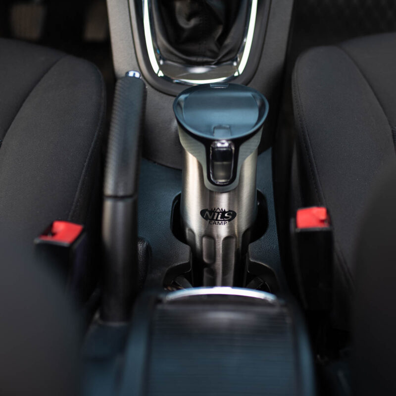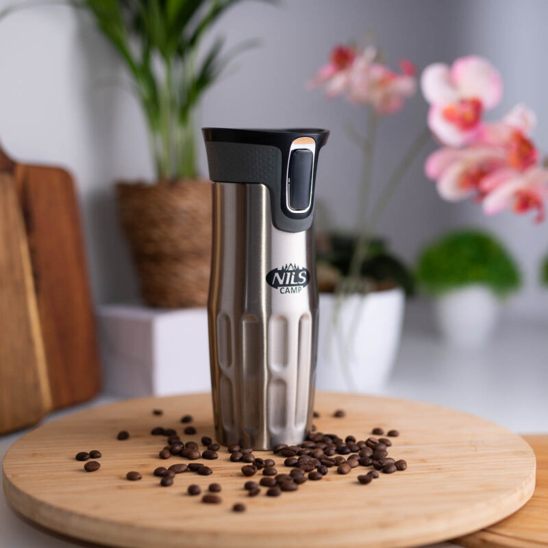 Der Thermobecher NCC06 der Marke NILS CAMP zeichnet sich sowohl durch eine einfache Konstruktion als auch durch sein originelles Design aus! NCC06 ist doppelwandig und aus rostfreiem Stahl hergestellt, daher hält er die eingefüllten Getränke warm bis zu 12 Stunden und kalt bis zu 24 Stunden. Der Thermobecher NCC06 hat ein sehr innovatives Öffnungssystem. Wenn man trinken möchte, soll man den Druckknopf drücken und gedrückt halten. Das Verringelungssystem wird geöffnet. Um den Thermobecher zu schließen, reicht es, den Durckknopf zu lösen. Ein großer Vorteil ist auch die rutschfeste Unterseite des Bechers aus Gummi, was vor dem Verschütten des heißen Kaffes oder Tees schützt, wenn der Thermobecher geöffnet ist!