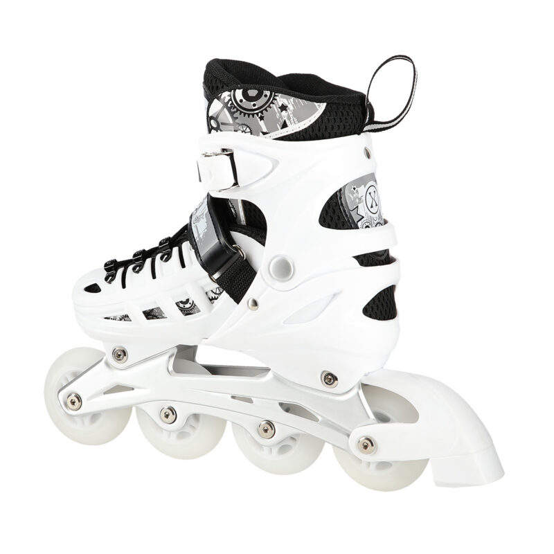 Das Produkt NH10905 steht für reine Freude. Dank der Möglichkeit der Änderung von Rollen auf die Hinterachse können sich die Inliner funktional in Inliner-Rollschuhe verwandeln. Diese Lösung ermöglicht es den Jüngsten, die ersten Schritte in diesem Sport zu tun. Wenn noch eine Rolle montiert wird, aber in diesem Falle auf die Vorderachse, kann sich das Produkt funktional in Rollschuhe verwandeln. Dieses Produkt ist mit einer Alu-Schiene und einer Bremse ausgestattet, was die Sicherheit gewährleistet. Die Rollen und die Lager der Klasse ABEC7 ermöglichen Ihnen einen geringeren Rollwiderstand, d.h. eine schnellere Fahrt.
