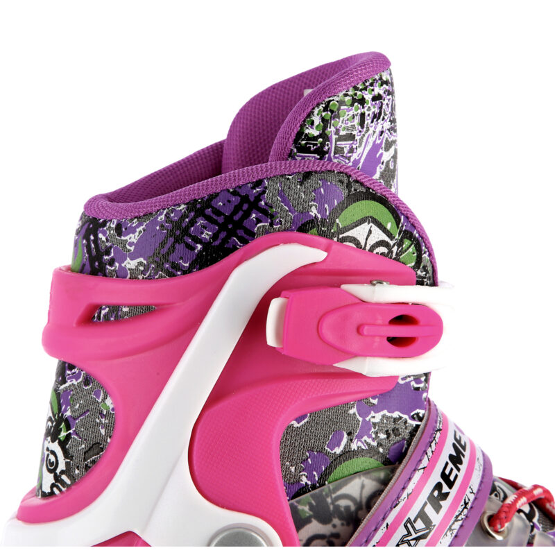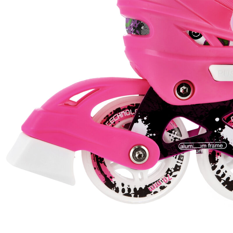Das Produkt NH18122 steht für reine Freude. Dank der Möglichkeit der Änderung von Rollen auf die Hinterachse können sich die Inliner funktional in Inliner-Rollschuhe verwandeln. Diese Lösung ermöglicht es den Jüngsten, die ersten Schritte in diesem Sport zu tun. Wenn noch eine Rolle montiert wird, aber in diesem Falle auf die Vorderachse, kann sich das Produkt funktional in Rollschuhe verwandeln. Dieses Produkt ist mit einer Alu-Schiene und einer Bremse ausgestattet, was die Sicherheit gewährleistet. Die Rollen und die Lager der Klasse ABEC7 ermöglichen Ihnen einen geringeren Rollwiderstand, d.h. eine schnellere Fahrt.