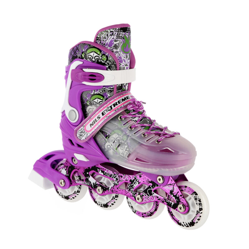 Die Schlittschuhe NH18122 Nils Extreme zeichnen sich durch sehr gute Fahreigenschaften aus. Dies erreicht man dank den Kufen, die aus hochwertigem rostfreiem Stahl hergestellt wurden, und dank dem System von vielen Verschlüssen (d.h. Klettverschluss, Verschlussschnalle und Schnürung). Dieses System ist für die Stabilität der Füße verantwortlich. Das alles trägt dazu bei, dass dieses Modell unter allen Bedingungen genutzt werden kann und Ihnen ausgezeichnete Erlebnisse während der Fahrten gewährleistet.