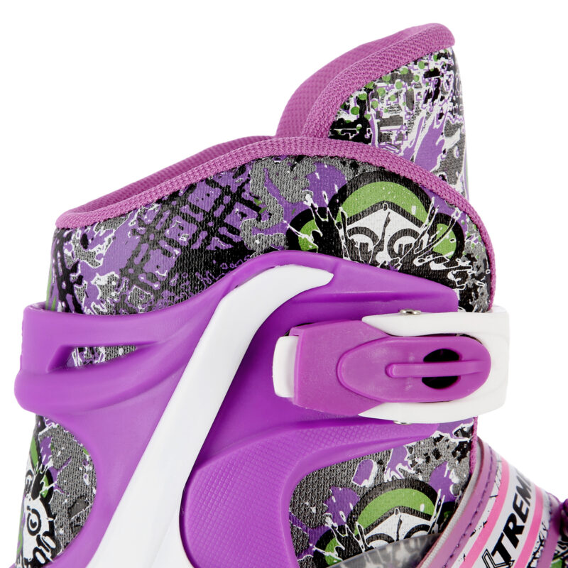 Das Produkt NH18122 steht für reine Freude. Dank der Möglichkeit der Änderung von Rollen auf die Hinterachse können sich die Inliner funktional in Inliner-Rollschuhe verwandeln. Diese Lösung ermöglicht es den Jüngsten, die ersten Schritte in diesem Sport zu tun. Wenn noch eine Rolle montiert wird, aber in diesem Falle auf die Vorderachse, kann sich das Produkt funktional in Rollschuhe verwandeln. Dieses Produkt ist mit einer Alu-Schiene und einer Bremse ausgestattet, was die Sicherheit gewährleistet. Die Rollen und die Lager der Klasse ABEC7 ermöglichen Ihnen einen geringeren Rollwiderstand, d.h. eine schnellere Fahrt.