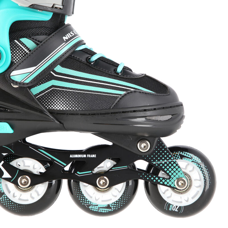Die Schlittschuhe NH18190 Nils Extreme zeichnen sich durch sehr gute Fahreigenschaften aus. Dies erreicht man durch die Kufen, die aus hochwertigem rostfreiem Stahl hergestellt wurden, und durch das System von vielen Verschlüssen (d.h. Klettverschluss, Verschlussschnalle und Schnürung). Dieses System ist für die Stabilität der Füße verantwortlich. Das alles trägt dazu bei, dass dieses Modell unter allen Bedingungen genutzt werden kann und Ihnen ausgezeichnete Erlebnisse während der Fahrten gewährleistet.