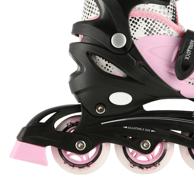 Die Inliner NH18331 stehen für Ihre reine Freude. Mit der Möglichkeit der Befestigung von einer zusätzlichen Rolle an der Hinterachse können sich die Inliner funktional in Inliner-Rollschuhe verwandeln. Diese Lösung erleichtert den Jüngsten, die ersten Schritte im Inlineskating zu tun. Mit der Möglichkeit der Befestigung von einer zusätzlichen Rolle an der Vorderachse kann sich hingegen das Produkt funktional in Rollschuhe verwandeln. Die Inliner sind mit einer speziellen Schiene aus Plastik und einer Bremse ausgestattet, die die Sicherheit während der Benutzung gewährleisten. Die Rollen der Klasse ABEC7 ermöglichen Ihnen einen geringeren Rollwiderstand. Gleichzeitig können Sie schneller fahren.