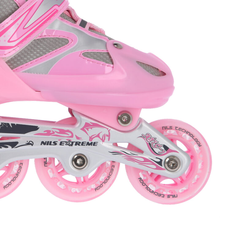 Die Schlittschuhe NH18366 Nils Extreme zeichnen sich durch sehr gute Fahreigenschaften aus. Dies erreicht man durch die Kufen, die aus hochwertigem rostfreiem Stahl hergestellt wurden, und durch das System von vielen Verschlüssen (d.h. Klettverschluss, Verschlussschnalle und Schnürung). Dieses System ist für die Stabilität der Füße verantwortlich. Das alles trägt dazu bei, dass dieses Modell unter allen Bedingungen genutzt werden kann und Ihnen ausgezeichnete Erlebnisse während der Fahrten gewährleistet.
