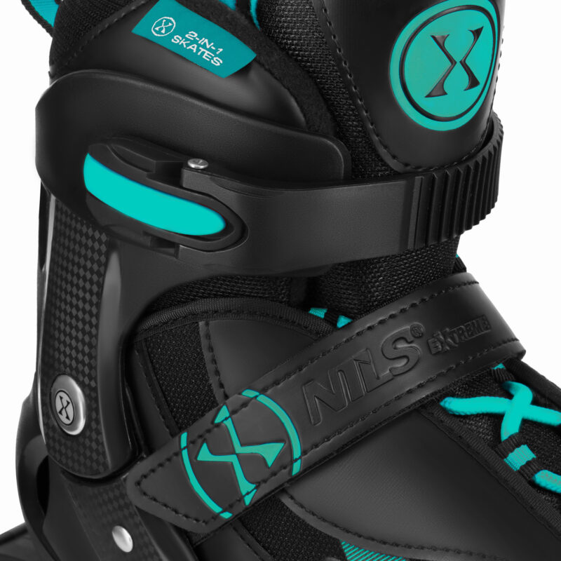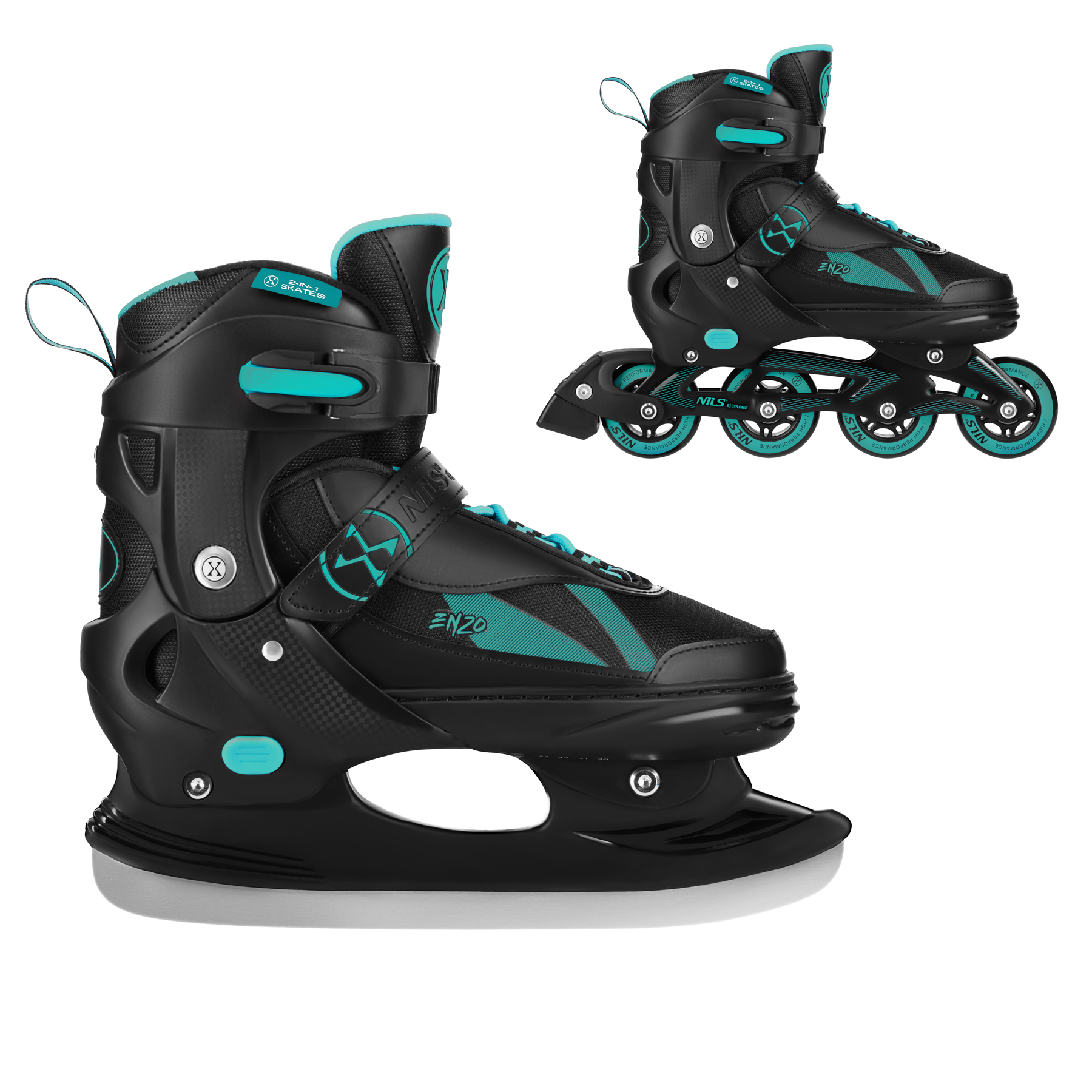 NH382 INLINE-SKATES 2-IN-1 ENZO TÜRKIS GR. L (40-43) MIT AUSTAUSCHBAREM HOCKEYKUFEN NILS EXTREME