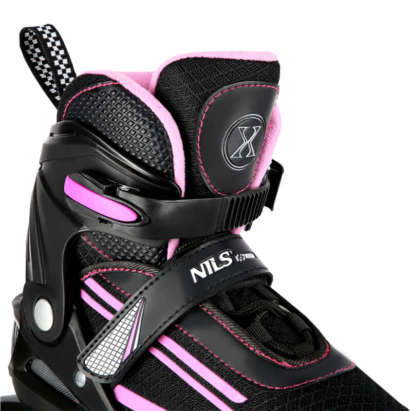 NJ19803A Nils Extreme ist ein Modell der Inliner für Anfänger und Skating-Liebhaber mit Vorkenntnissen. Dieses Produkt bildet eine Verbindung zwischen der interessanten und modernen Musterart und der hochwertigen Herstellung.