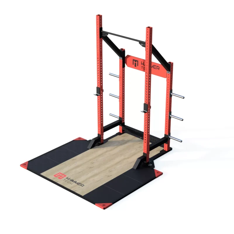 Dank einer speziellen 3 cm dicken Plattform erhält unser Half Rack neue Möglichkeiten, die alle schätzen werden, die schwere Lasten lieben. Der Gummiboden absorbiert Stöße perfekt und das Holz sorgt für perfekten Halt und Stabilisierung beim Training.