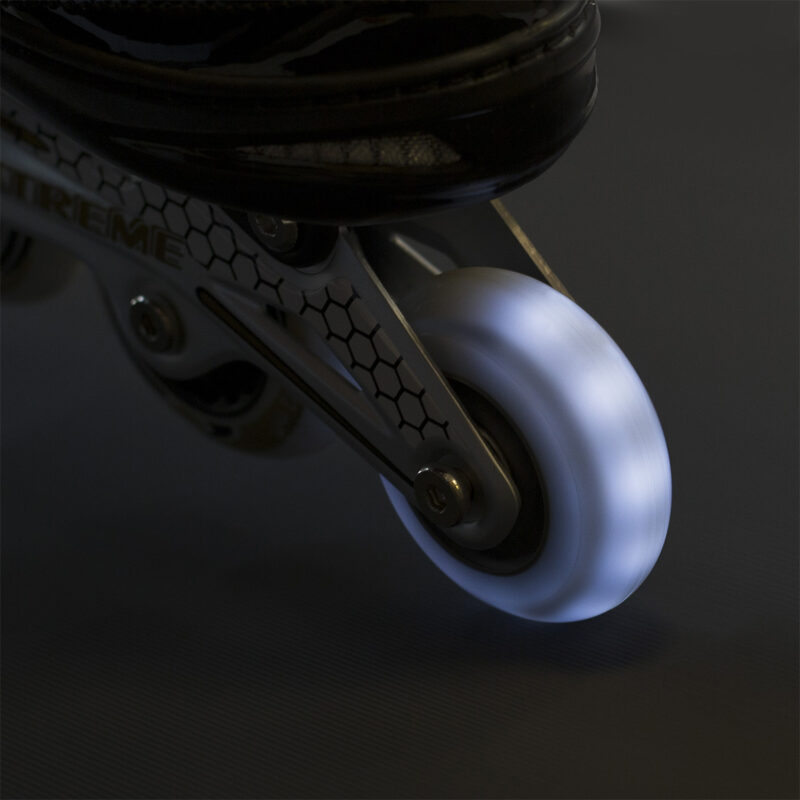Die Rollen PU LED-3 WEIß NILS EXTREME wurden aus Polyurethan hergestellt. Zu ihren wichtigsten Parametern gehören ihre Härte und ihr Durchmesser. Die Härte der Rollen beeinflusst sowohl den Komfort bei der Fahrt als auch die Haftfähigkeit. Die Rollen PU-82A sorgen für gute Stoßdämpfung und absorbieren Unebenheiten auf allen Oberflächen. Der Durchmesser hat einen direkten Einfluss auf die Geschwindigkeit. Die Rollen mit einem größeren Durchmesser ermöglichen es Ihnen, höhere Geschwindigkeiten zu erreichen. Jedoch gewährleisten sie nicht so gute Wendigkeit wie die Rollen mit einem kleineren Durchmesser. Sie sind mit LEDs ausgestattet, die bei der Fahrt blinken.