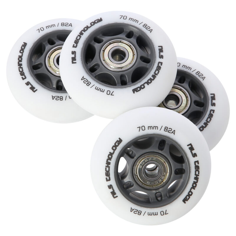 Die Rollen PU WEIß MATT NILS EXTREME wurden aus Polyurethan hergestellt. Zu ihren wichtigsten Parametern gehören ihre Härte und ihr Durchmesser. Die Härte der Rollen beeinflusst sowohl den Komfort bei der Fahrt als auch die Haftfähigkeit. Die Rollen PU-82A sorgen für gute Stoßdämpfung und absorbieren Unebenheiten auf allen Oberflächen. Der Durchmesser hat einen direkten Einfluss auf die Geschwindigkeit. Die Rollen mit einem größeren Durchmesser ermöglichen es Ihnen, höhere Geschwindigkeiten zu erreichen. Jedoch gewährleisten sie nicht so gute Wendigkeit wie die Rollen mit einem kleineren Durchmesser. ABEC 9 ist ein sehr präzises Lager, das aus hochwertigem Carbonstahl hergestellt wurde. Dies gewährleistet die ideale Härte und die Robustheit der Rollen. Dieses Lager zeichnet sich durch den geringsten Rollwiderstand aus, was nach den amerikanischen Toleranzklassen von Annular Bearing Engineering Commitee, Abkürzung ABEC, die höchste Geschwindigkeit bedeutet. Ein wichtiger Parameter dieses Lagers ist seine Exzentrizität, d.h. die Rundheit der Fläche im Innenring, die lediglich 0,0012 mm beträgt.