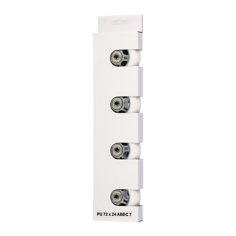 Die Rollen PU WEIß sind aus Polyurethan hergestellt. Zu ihren wichtigsten Parametern gehören ihre Härte, Qualität und ihr Durchmesser. Die Härte der Rollen beeinflusst sowohl den Komfort bei der Fahrt als auch die Bodenhaftung. Die Rollen PU-82A sorgen für gute Stoßdämpfung und absorbieren Unebenheiten auf allen Oberflächen. Der Durchmesser hat einen direkten Einfluss auf die Geschwindigkeit. Die Rollen mit einem größeren Durchmesser ermöglichen es Ihnen, höhere Geschwindigkeiten zu erreichen. Jedoch gewährleisten sie nicht so gute Wendigkeit wie die Rollen mit einem kleineren Durchmesser.
