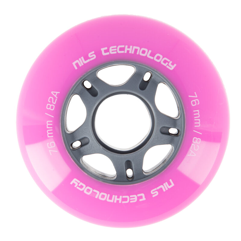 Die Rollen PU PINK NILS EXTREME wurden aus Polyurethan hergestellt. Zu ihren wichtigsten Parametern gehören ihre Härte und ihr Durchmesser. Die Härte der Rollen beeinflusst sowohl den Komfort bei der Fahrt als auch die Haftfähigkeit. Die Rollen PU-82A sorgen für gute Stoßdämpfung und absorbieren Unebenheiten auf allen Oberflächen. Der Durchmesser hat einen direkten Einfluss auf die Geschwindigkeit. Die Rollen mit einem größeren Durchmesser ermöglichen es Ihnen, höhere Geschwindigkeiten zu erreichen. Jedoch gewährleisten sie nicht so gute Wendigkeit wie die Rollen mit einem kleineren Durchmesser.