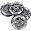 Die Rollen PU SCHWARZ NILS EXTREME wurden aus Polyurethan hergestellt. Zu ihren wichtigsten Parametern gehören ihre Härte und ihr Durchmesser. Die Härte der Rollen beeinflusst sowohl den Komfort bei der Fahrt als auch die Haftfähigkeit. Die Rollen PU-82A sorgen für gute Stoßdämpfung und absorbieren Unebenheiten auf allen Oberflächen. Der Durchmesser hat einen direkten Einfluss auf die Geschwindigkeit. Die Rollen mit einem größeren Durchmesser ermöglichen es Ihnen, höhere Geschwindigkeiten zu erreichen. Jedoch gewährleisten sie nicht so gute Wendigkeit wie die Rollen mit einem kleineren Durchmesser. ABEC 9 Chrome ist ein sehr präzises Lager, das aus hochwertigstem verchromtem Stahl hergestellt wurde. Es zeichnet sich durch den geringsten Rollwiderstand aus, was nach den amerikanischen Toleranzklassen von Annular Bearing Engineering Commitee, Abkürzung ABEC, die höchste Geschwindigkeit bedeutet. Ein wichtiger Parameter dieses Lagers ist seine Exzentrizität, d.h. die Rundheit der Fläche im Innenring, die lediglich 0,0012 mm beträgt.