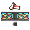 Beim Gebrauch dieses Liegestützbrettes ist es möglich, das Training des fast ganzen Oberkörperteils zu machen. Das kann man erreichen, dadurch dass man unterschiedlich die Griffe in die gewünschte Position einsteckt. Jede Änderung ermöglicht es, eine andere Muskelgruppe oder denselben Muskel aufzubauen, jedoch die Arbeit dieses Muskels sieht dann anders aus. Dadurch wird der Aufbau mehr komplex. Mit diesem Liegestützbrett können Sie Übungen für Brustmuskeln, Trizeps, Schulter- und Rückenmuskulatur machen. Jede Muskelgruppe ist auf dem Brett mit einer anderen Farbe gekennzeichnet. Die Bedeutung der Farbe ist so beschrieben, dass die Änderung der Position während des Trainings sehr schnell und einfach sein kann.