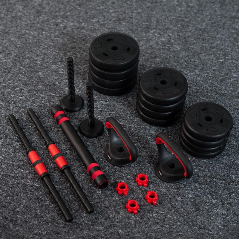 Zwei Kurzhanteln : Befestigen Sie auf der Langhantel die Hantelscheiben beidseitig und ziehen Sie die Verschlüsse fest an. Zwei Kurzhanteln sind perfekt für Übungen für den Aufbau der folgenden Muskeln: Bizeps, Trizeps, Schultern, Brust oder Rücken. Ein Training mit Kurzhanteln ist vielseitig und ermöglicht, jede Körperpartie zu trainieren und alle grundlegende Bewegungsmuster nachzuahmen. Sie können auch Kraft und Ausdauer verbessern.