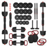 - 2 x Kurzhantel, 1 x Kurzhantelstange, 2 x Kugelhantel, 2 x Liegestützgriff,1 x Kurzhantel mit drei Griffen, 2 x Kurzhantel mit zwei Griffen