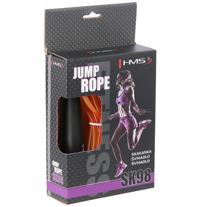 Das SK98 HMS Springseil gehört zu klassischen Elementen eines Fitnessstudios, aber in einer neuen Form. Das Springseil verfügt über zwei Griffe aus Plastik und das Seil aus Gummi.