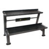 STR12 ist mit 4 Halterungen für Langhantelstangen und 7 Griffen für Gewichte (Hantelscheiben) ausgestattet. Im oberen Teil des Ständers finden Sie auch die Ablage für Ihre Kurzhanteln. Dies bringt die richtige Ordnung für Ihr Zubehör. Das obere Gestell verfügt über Sicherheitselemente gegen das Abrutschen von Kurzhanteln auf beiden Seiten, sowie ist mit Dämpfungs- und Schutzmaterial für den Ständer ausgestattet.