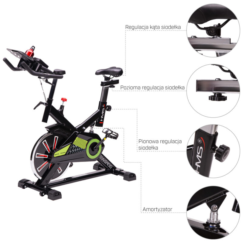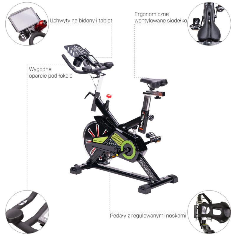 Ein bequemer Sattel und ein speziell geformter Lenker mit den praktischen Armlehnen gewährleisten eine komfortable Körperhaltung. Der Sattel und der Lenker sind horizontal und vertikal verstellbar. Sie können daher den Heimtrainer problemlos an Ihre Bedürfnisse anpassen. Außerdem ist es auch möglich, die Neigung des Sattels einzustellen. Die Pedalhaken mit Riemen gewährleisten die stabile Position Ihrer Füße. Jeder weiß, dass es sehr wichtig ist, ausreichend Flüssigkeit während der Trainings zu sich zu nehmen. Mit der Trinkflasche, die Sie im Set finden, und einer speziellen Halterung ist das kein Problem. Als ob das noch nicht genug wäre, ermöglicht Ihnen der Computer in diesem Modell die Verbindung mit einer mobilen App. Eine solche Lösung gewährleistet die Überwachung Ihrer Trainings und Fortschritte. Ihr Handy oder Tablet kann an einem speziell dafür vorgesehenen Platz gelegt werden.