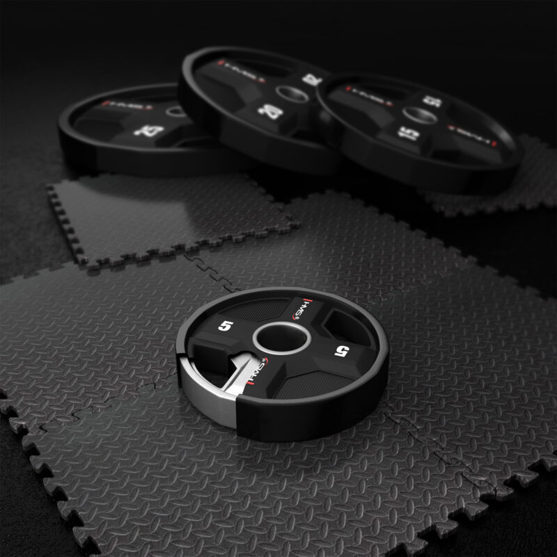 TPC-Gewichte werden aus hochwertigem Stahl hergestellt, der mit einer Schutzschicht aus gegossenem Polyurethan (CPU) überzogen ist, die eine außergewöhnliche Widerstandsfähigkeit gegen Abrieb, Risse und andere mechanische Beschädigungen bietet. Das Polyurethan schützt auch den Boden und die Geräte wirksam vor Kratzern und Stößen, sodass die TPC-Platten die ideale Wahl für den intensiven Einsatz in Ihrem Trainingsraum sind. Darüber hinaus ist das Material geruchsneutral und hinterlässt keinen unangenehmen Geruch.