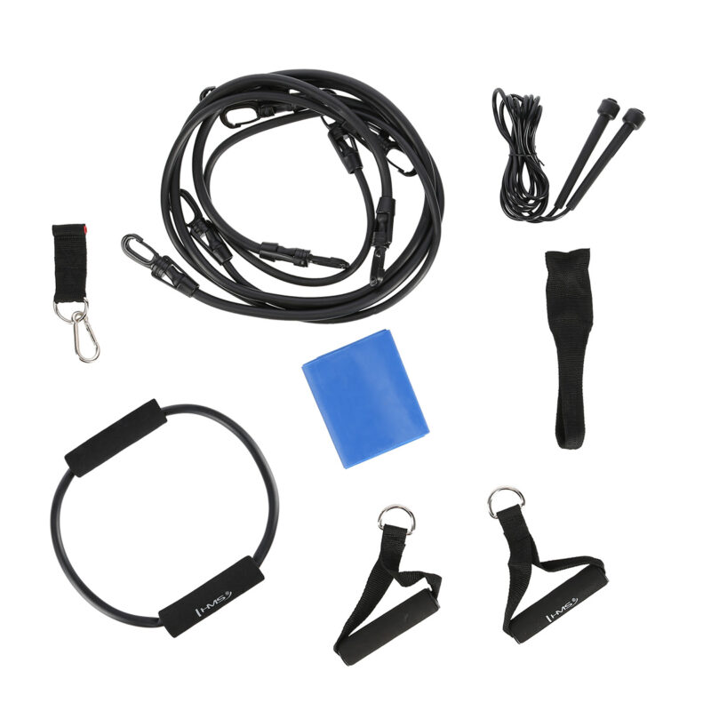 TX02 HMS – ist ein Übungsset. Das Produkt nutzt das Körpergewicht des Benutzers, um seine Fitness und Kraft zu verbessern. Hohe Qualität, durchdachtes Design und Langlebigkeit garantieren ein erfolgreiches Training unter allen Bedingungen. Das Set enthält vier Widerstandsbänder, ein Gummiband, ein Widerstandsband, zwei Schaumstoff-Handgriffe, einen Knöchelgriff, einen Türgriff und ein Springseil. Das Gerät ist eine Möglichkeit, ein modernes Training im Sinne des Cross-Trainings zu absolvieren. Jedes Kabelzugpaar hat eine andere Steifigkeit, sodass Sie die Intensität des Widerstandstrainings variieren können. An jedem Kabelzug befindet sich ein Griff, sodass ein umfassendes Krafttraining aller Muskelgruppen möglich ist.