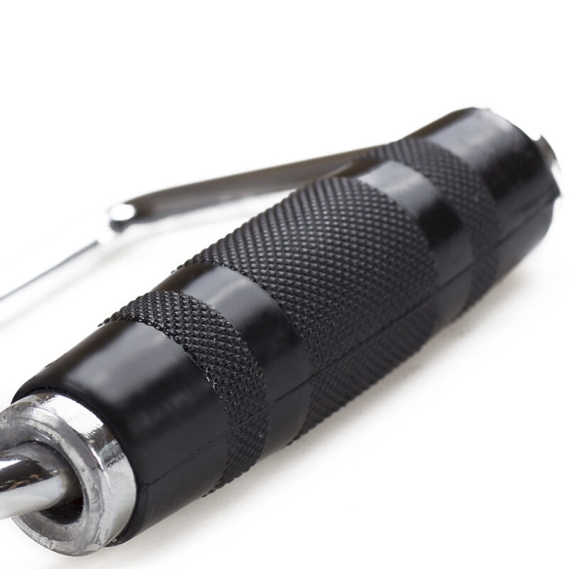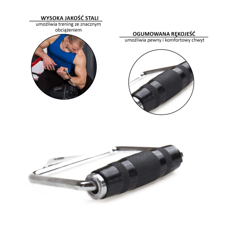 Der Handgriff zeichnet sich durch Gummierung aus, die einen sicheren und komfortablen Griff gewährleistet. Dadurch können Sie sich auf die genaue Durchführung der Übungen konzentrieren, ohne sich Sorgen zu machen, dass der Handgriff aus Ihrer Hand fallen kann.