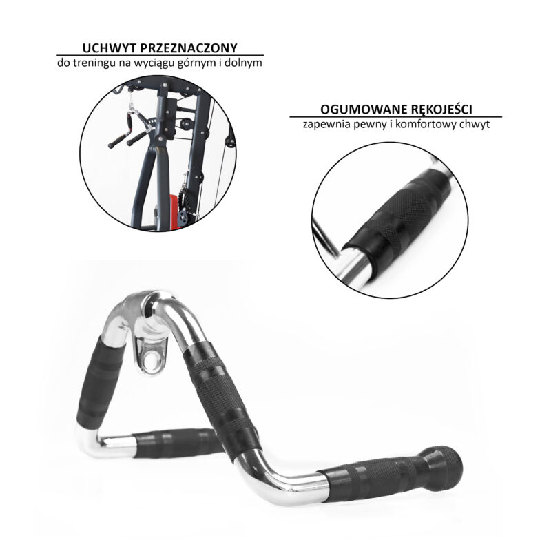Dank der Form des Handgriffes wird das Bewegungsausmaß vergrößert – im Gegensatz zu einfachem oder engem Griff. Mit der Nutzung dieses Produkts verbindet sich auch größere Muskelspannung. Dadurch wird Ihr Training effektiver. Die Struktur des Handgriffes gewährleistet eine ideale Haltung in Ihrer Hand und verlangt von Ihnen die richtige Durchführung der Bewegungen. Ein breiter Abstand gibt die Möglichkeit, Übungen in einem anderen Winkel als im engen Griff zu machen. Dies sorgt für effektive Trainings und eine vollständige Muskelentwicklung einer bestimmten Muskelgruppe. Der Rudergriff wurde aus Stahl hergestellt, was es Ihnen ermöglicht, die Übungen auch mit großer Belastung durchzuführen.