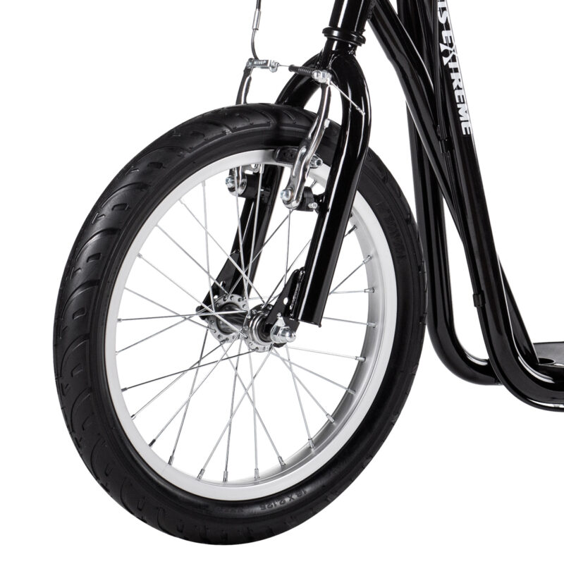Dieser Roller richtet sich an Jugendliche und Erwachsene. Maximales Nutzergewicht beträgt: 100 kg. Der Rahmen und der Lenker werden aus festem und widerstandsfähigem Stahl hergestellt. Der WH119 Roller ist perfekt sowohl auf den asphaltierten Parkwegen, gepflasterten Bürgersteigen sowie für Trips im Gelände. Die großen aufgepumpten Reifen ermöglichen es Ihnen, eine Strecke mit Holprigkeiten reibungslos zurückzulegen. Das effektive und sichere Bremsen gewährleistet Ihnen eine Stahlbremse V-Brake.