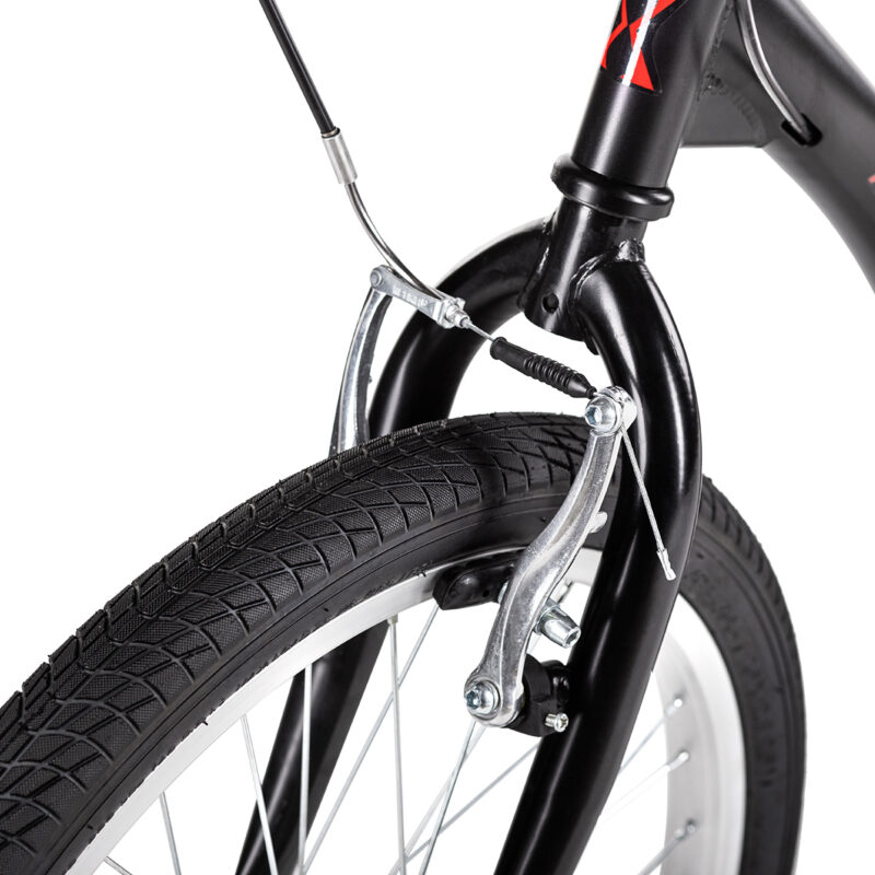Dieser Roller richtet sich an Jugendliche und Erwachsene. Maximales Nutzergewicht beträgt: 100 kg. Der Rahmen und der Lenker wurden aus festem und widerstandsfähigem Stahl hergestellt. Die Griffe sind mit Schrauben befestigt, was das plötzliche Biegen und das Runterrutschen der Griffe verhindert. Der WH201 Roller ist perfekt sowohl auf den asphaltierten Parkwegen, gepflasterten Bürgersteigen sowie für Trips im Gelände. Die großen aufgepumpten Reifen ermöglichen es Ihnen, eine Strecke mit Holprigkeiten reibungslos zurückzulegen. Das effektive und sichere Bremsen gewährleistet Ihnen eine Stahlbremse V-Brake, die im vorderen und hinteren Teil des Rollers montiert wurde.