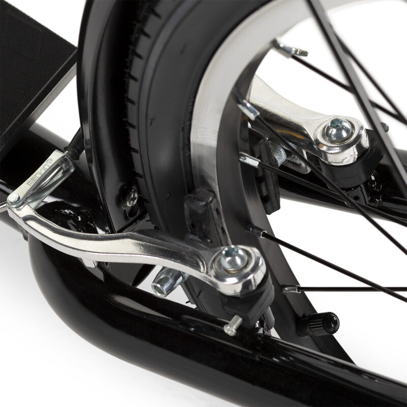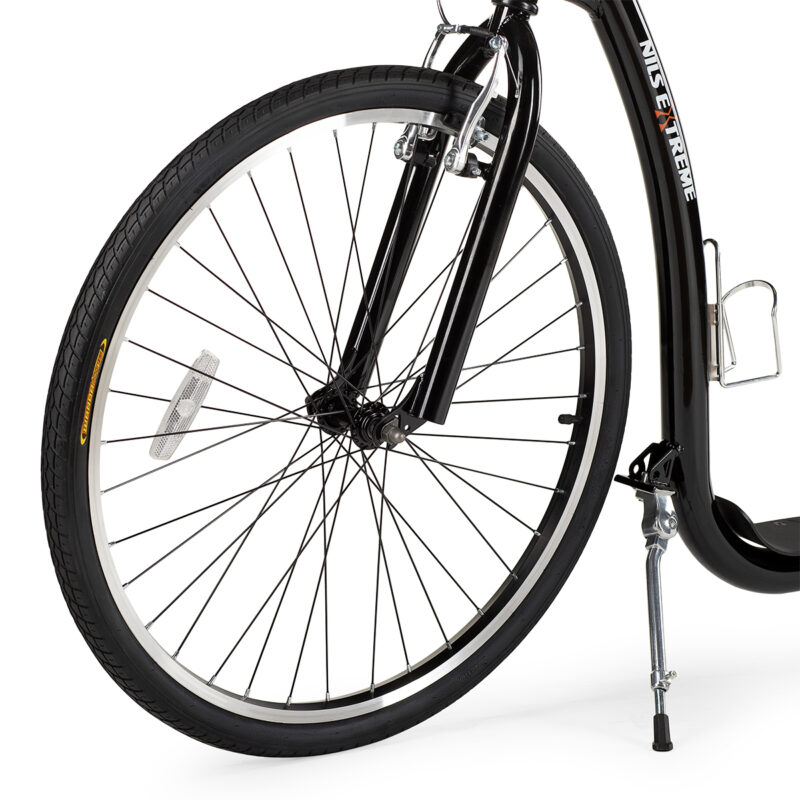 Dieser Roller richtet sich an Jugendliche und Erwachsene. Seine sehr großen aufgepumpten Reifen machen den Eindruck, dass man mit einem Fahrrad zu tun hat. Dadurch dass der Durchmesser der vorderen Räder beträgt 26”, was beeindrucken ist, können Sie mit einem einzigen Abstoß mit Ihrem Bein einen großen Teil der Strecke zurücklegen. Außerdem ist das Manövrieren des Rollers sehr einfach.