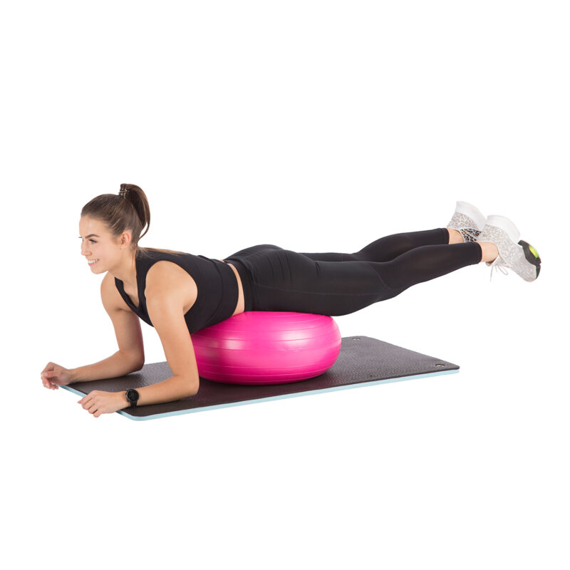 Ein charakteristisches Merkmal des Balls ist seine abgeflachte Form, die eine bessere Stabilität während der Übung gewährleistet. Diese Form ermöglicht es auch, Übungen mit unterschiedlichen Griffbreiten auszuführen. Das spezielle Loch in der Mitte verbessert zudem den Komfort während des Trainings erheblich.